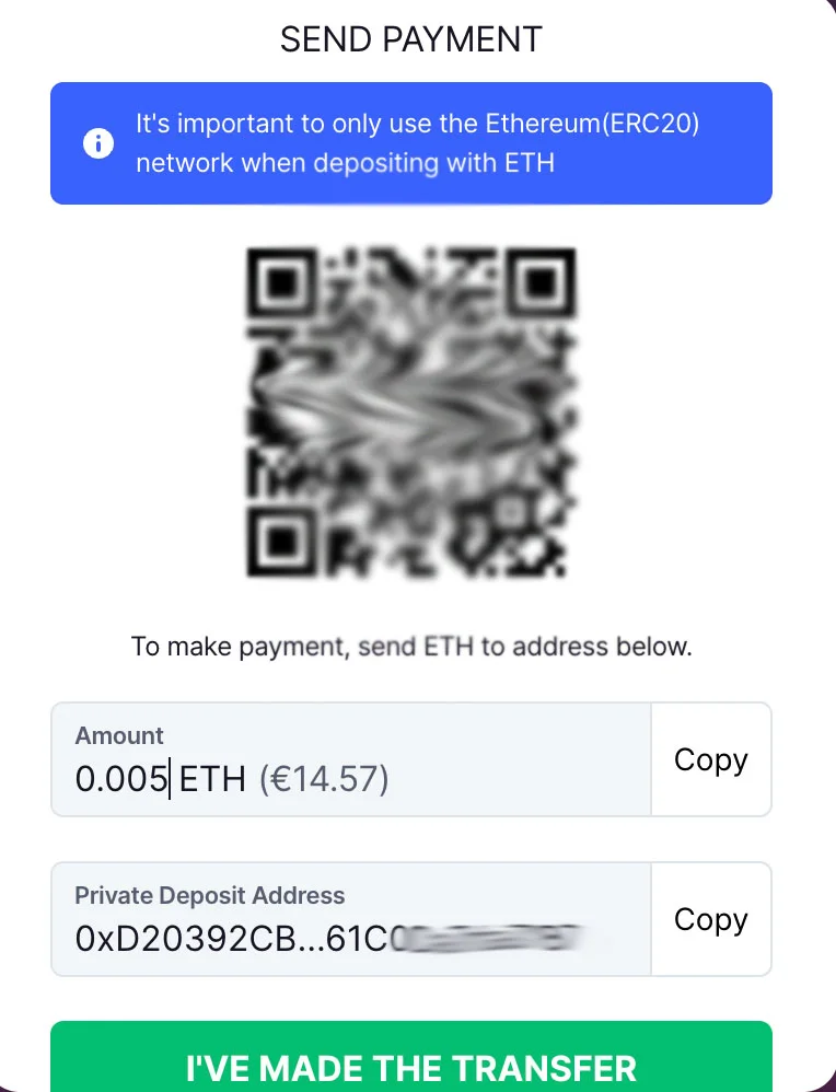 Sisene välismaa kasiinosse kuhu tahad raha kanda. Vali krüpto mida soovid kanda ja kopeeri Private Deposit Address või siis skanni QR kood