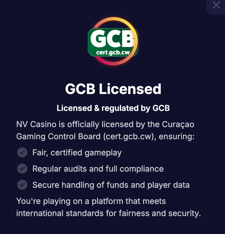 NV Casino on ametlikult litsentseeritud ja reguleeritud Curaçao valitsuse poolt.