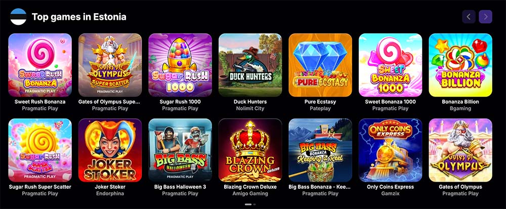 Populaarsed tiitlid: Mängijate lemmikute hulgast leiab sellised hitid nagu Joker Stoker, Gates of Olympus 1000, Sizzling Hot Deluxe ja Thunder Crown.